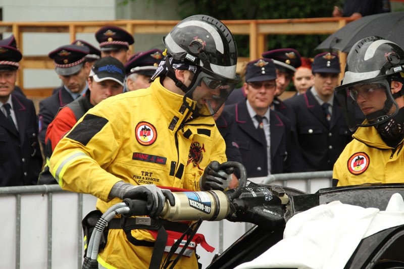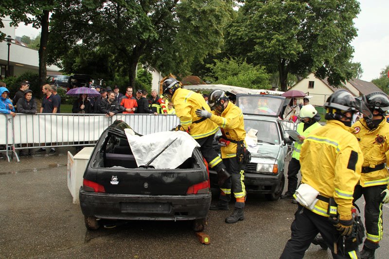 Für jedes Team galt es an zwei Tagen zwei verschiedene Unfallsituationen abzuarbeiten. Die Szenarien, so genannte Pits, unterscheiden sich im Schwierigkeitsgrad der Technischen Rettung, der zur Verfügung stehenden Zeit und dem Gesundheitszustand des Patienten. Am Samstag musste das TRT Günding das Standard-Szenario bewältigen, ein relativ komplexer Unfall mit mehreren Fahrzeugen und einer eingeklemmten Person. Dazu kam noch die Breisgauer Hitze mit ca. 35 Grad im Schatten.