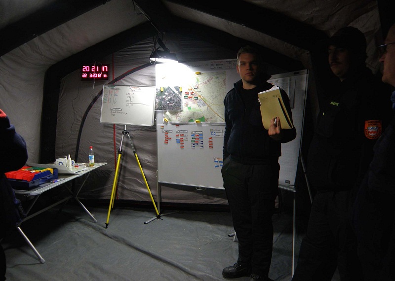 Nach dem theoretischen Teil zeigte die UG-ÖEL in mehreren Stationen ihre Möglichkeiten bei der Führungsunterstützung und stellte den Teilnehmern die Ausstattung des Einsatzleitwagens vor. Dazu gehören neben den Funk- und Kommunikationseinrichtungen auch die Hilfsmittel zur Lagedarstellung und Einsatzdokumentation.