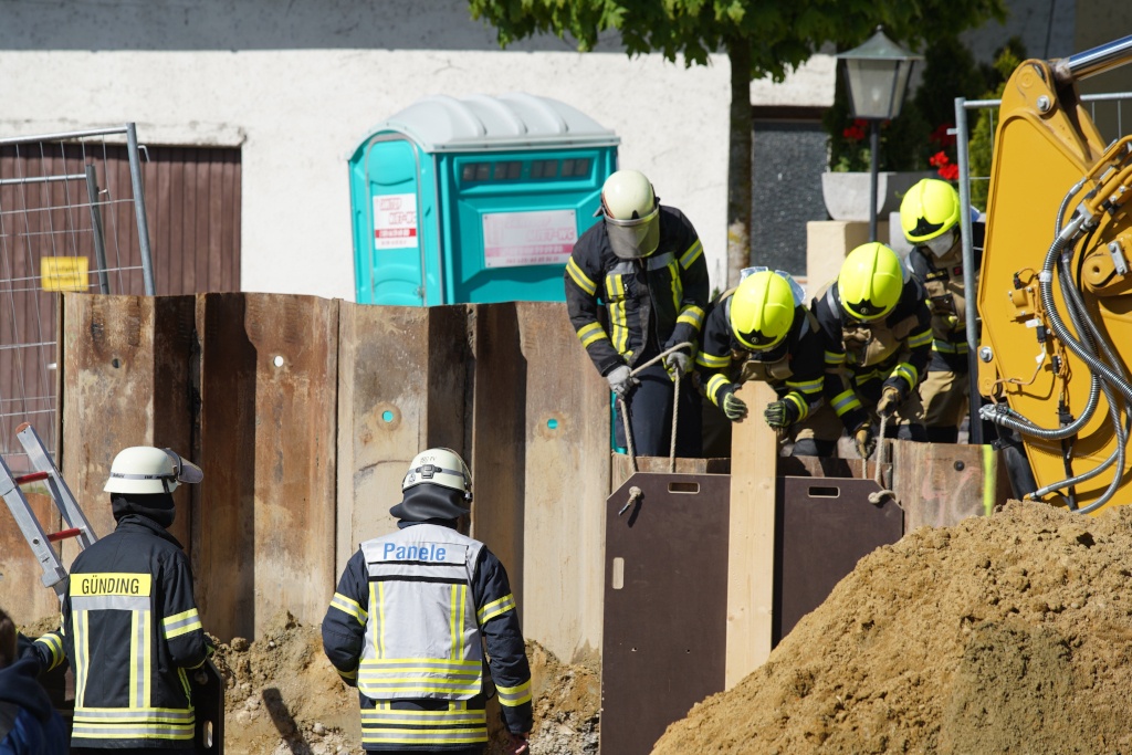 Am Samstag (22.05.2021) trafen sich die Feuerwehren der „Dispogruppe Tiefbau“ des Landkreises sowie das THW OV Dachau zur gemeinsamen Ausbildung in Günding.Einsätze nach Tiefbauunfällen sind zum Glück sehr selten, dann zählt jedoch jede Sekunde und für die Einsatzkräfte ist äußerste Vorsicht geboten. Beim Tiefbau wird in der Regel an oder unter der Erdoberfläche gearbeitet. Oft werden für Versorgungsleitungen metertiefe Gräben ausgehoben oder in Sand- oder Lehmgruben gearbeitet. Durch nachrutschendes Erdreich kommt es leider immer wieder vor, dass Personen verschüttet werden.