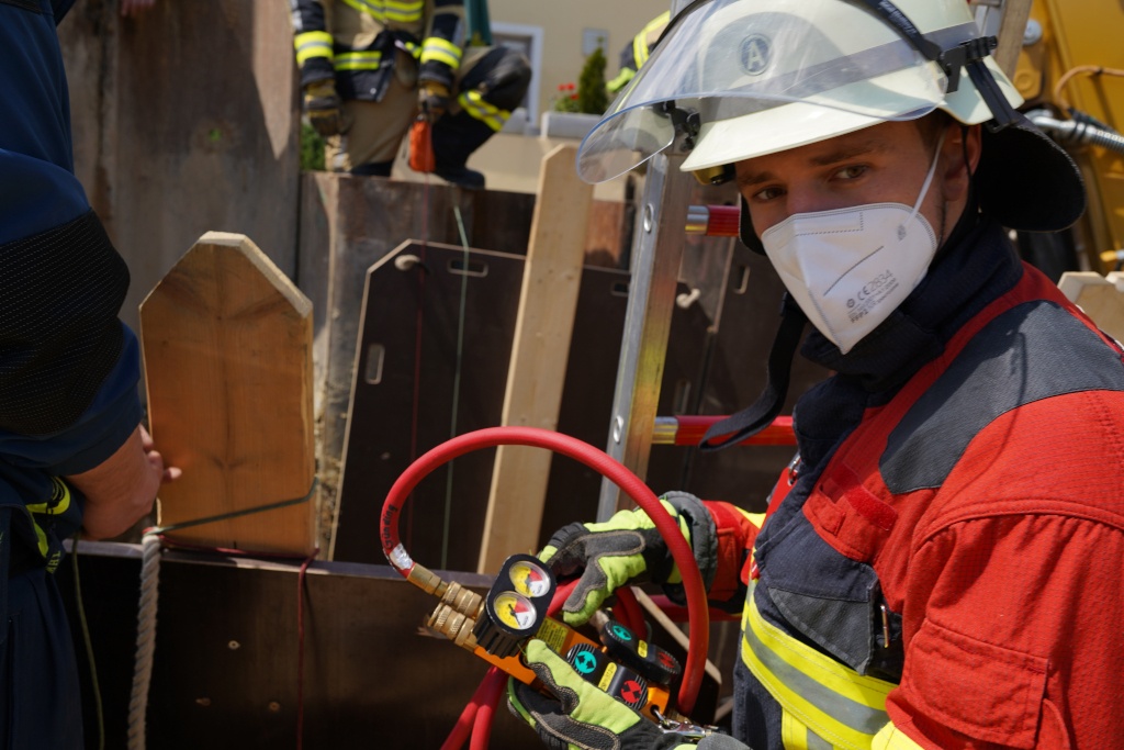 Wie bei allen Einsätzen ist die Eigensicherung das oberste Gebot für die eingesetzten Kräfte. Parallel zu den Rettungsarbeiten muss der Arbeitsbereich laufend abgestützt und gesichert werden. Das stellt in den engen Schächten eine besondere Schwierigkeit dar und muss regelmäßig geübt werden.