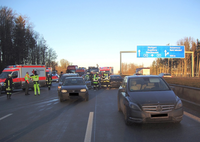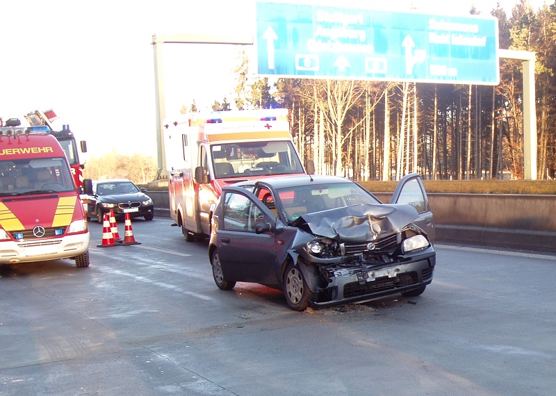 Auf der A8 haben sich am Dienstagmorgen (17.12.2013) gegen 8.10 Uhr zwischen den Anschlussstellen Dachau und Sulzemoos kurz hintereinander drei Auffahrunfälle mit sieben beteiligten Fahrzeugen ereignet. Dabei wurden vier Menschen leicht verletzt.
