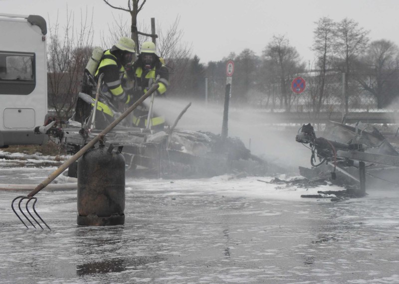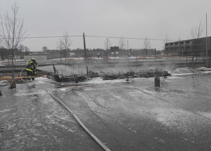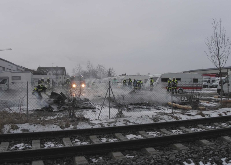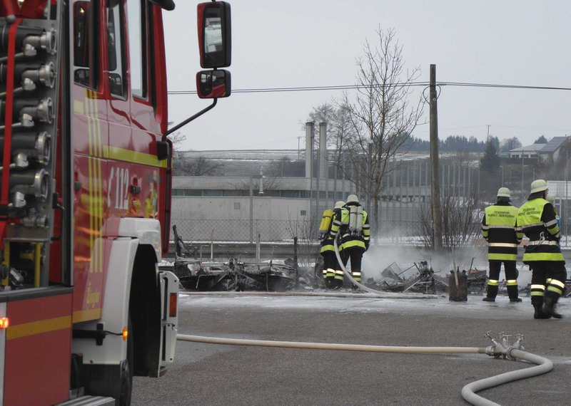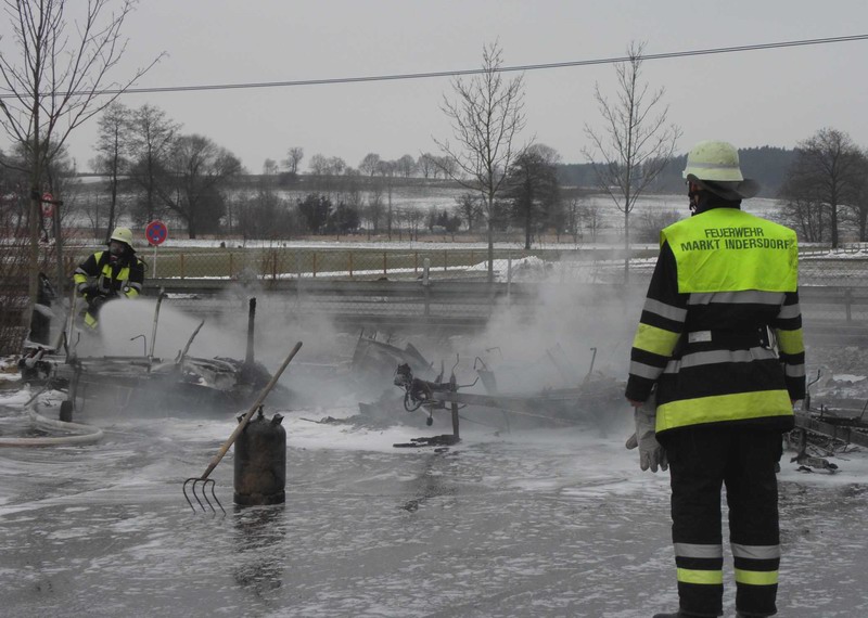 Mehrere besorgte Anrufer informierten am Sonntag früh gegen 06.30 Uhr Polizei und Integrierte Leitstelle von einem Brand im Indersdorfer Gewerbegebiet.Beim Eintreffen der ersten Kräfte der Indersdorfer Feuerwehr brannten auf dem Gelände des Betriebes aus vorerst noch ungeklärter Ursache drei Wohnwagen.