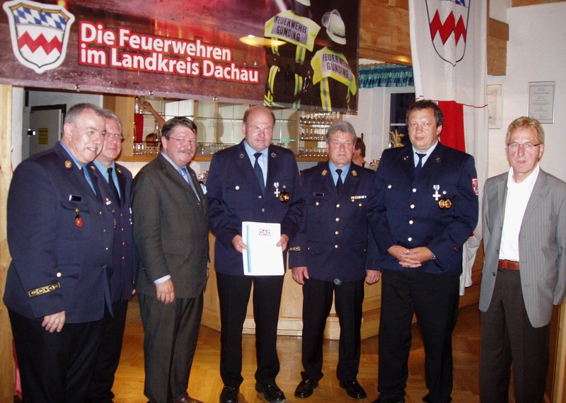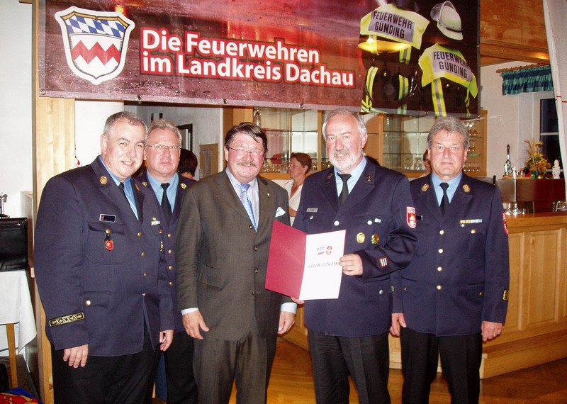 Zwei Sonderehrungen konnte Kreisbrandrat Rudi Reimoser zusammen mit Landrat Hansjörg Christmann anlässlich des Ehrenabends der Kreisbrandinspektion in der Gaststätte Doll in Ried vornehmen.Zum Ehrenmitglied im Kreisfeuerwehrverband Dachau wurde Georg Mair aus Indersdorf ernannt; in seiner Laudatio würdigte Kreisbrandrat Reimoser die Verdienste von Mair, der Gründungsmitglied des Kreisfeuerwehrverbandes Dachau war und bis letztes Jahr die Funktion des Schatzmeisters inne hatte.