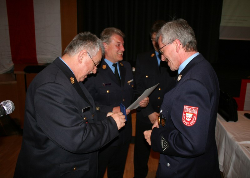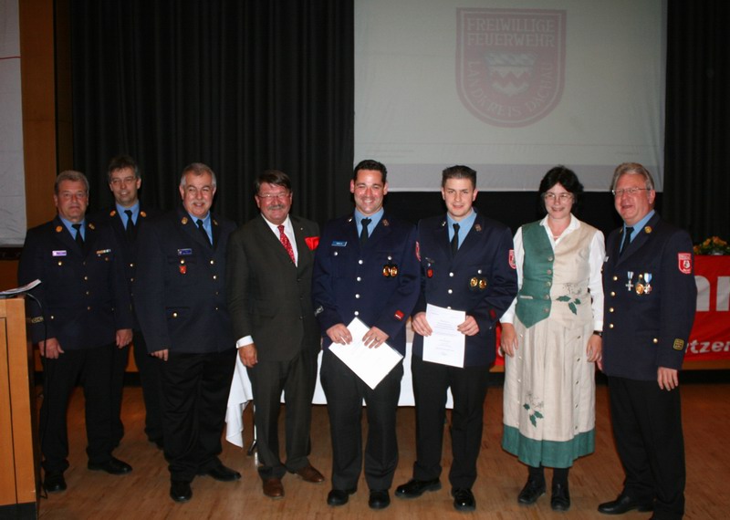 Nach dem gemeinsamen Abendessen nahmen der Landrat und der Kreisbrandrat im Namen des Freistaates die Verleihung der Urkunden vor – die ausgezeichneten Feuerwehrmänner kommen aus den Feuerwehren Ainhofen, Altomünster, Ampermoching, Amperpettenbach, Dachau, Ebertshausen, Einsbach, Eisenhofen, Eisolzried, Eschenried, Giebing, Günding, Haimhausen, Hebertshausen, Hirtlbach, Höfa, Indersdorf, Karlsfeld, Kollbach, Kreuzholzhausen, Lauterbach, Niederroth, Oberroth, Prittlbach, Puchschlagen, Unterweikertshofen, Unterweilbach und Westerholzhausen.
