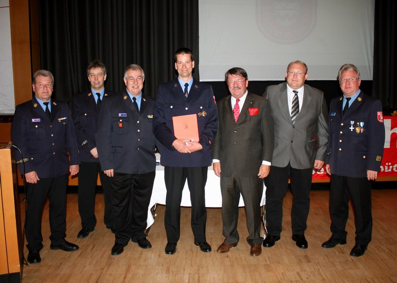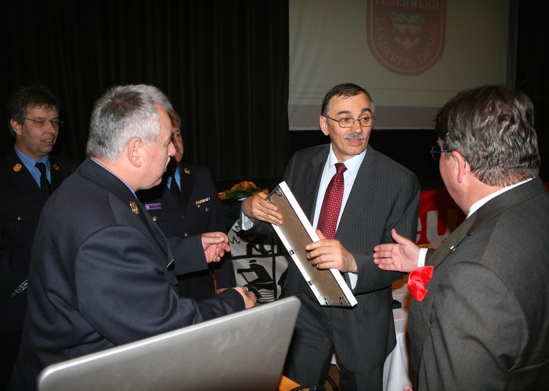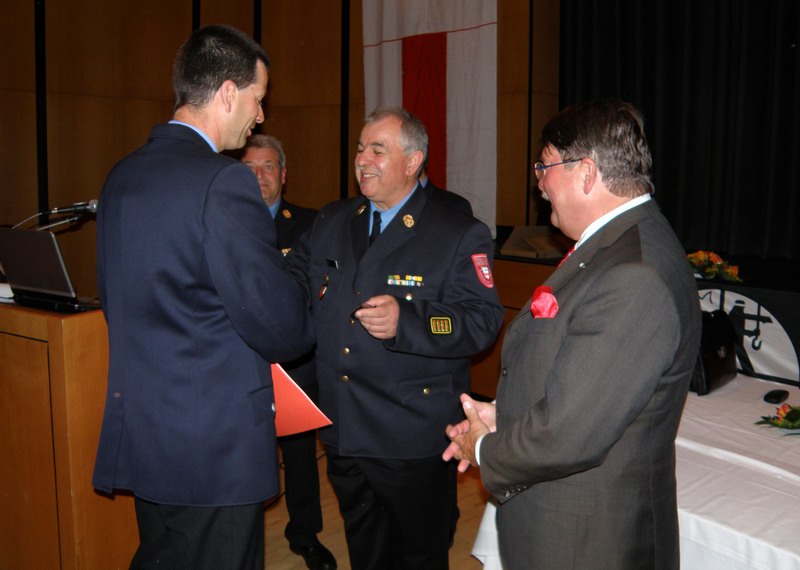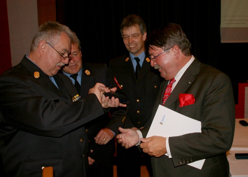 Zu den ersten Gratulanten zählten Kreisbrandrat Rudi Reimoser, die Kreisbrandinspektoren Wolfgang Blank und Heinrich Schmalenberg und Stadtbrandinspektor Konrad Tonhauser.