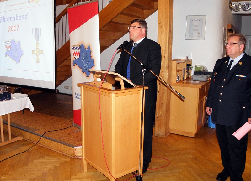 Kreisbrandrat Franz Bründler konnte neben Landrat Stefan Löwl die Bundestagsabgeordnete Gerda Hasselfeldt, die Landtagsabgeordneten Bernhard Seidenath, Anton Kreitmair und Martin Güll, die Mitarbeiterinnen und Mitarbeiter des Landratsamtes Dachau, die zuständigen Bürgermeister, Kommandanten und Jubilare, sowie die Mitglieder der Kreisbrandinspektion willkommen heißen.