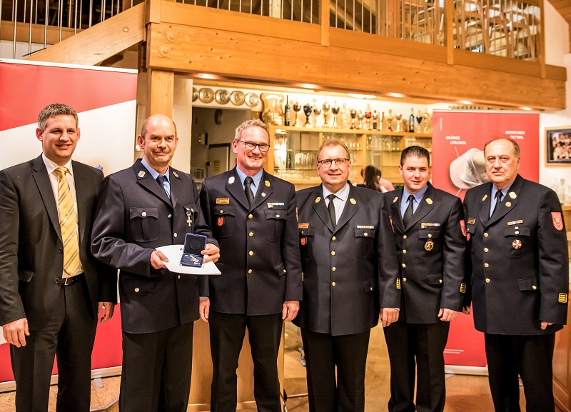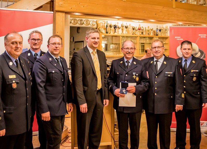 Für seine langjährigen Verdienste erhielt er von Landrat Stefan Löwl und Kreisbrandrat Franz Bründler das Bayerische Feuerwehr-Ehrenkreuz in Silber verliehen.