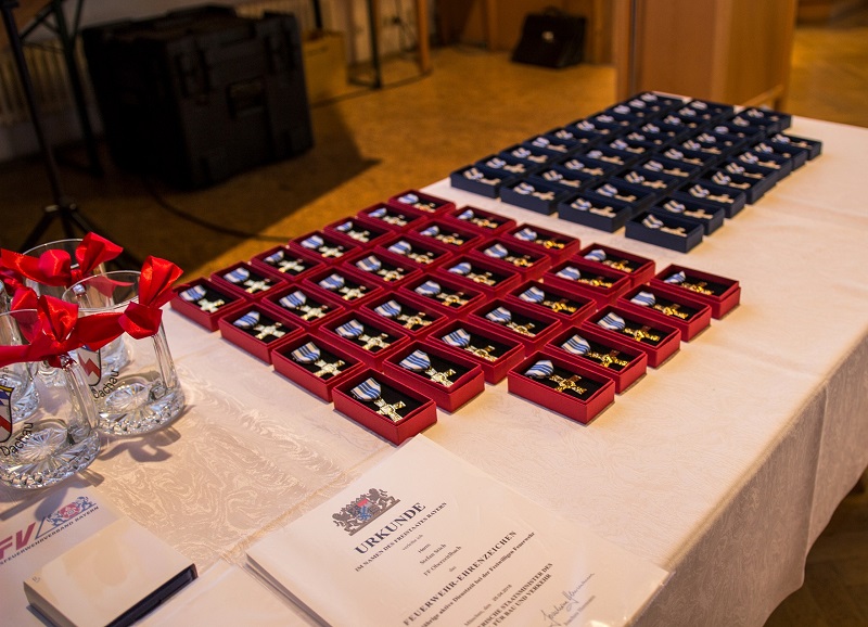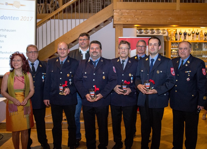Die ausgezeichneten Feuerwehrmänner kommen aus den Feuerwehren Ainhofen, Ampermoching, Arnbach, Asbach, Biberbach, Dachau, Eichhofen, Eisenhofen, Eisolzried, Feldgeding, Günding, Haimhausen, Hebertshausen, Hilgertshausen, Höfa, Hohenzell, Indersdorf, Karlsfeld, Kreuzholzhausen, Langenpettenbach, Niederroth, Obermarbach, Oberzeitlbach, Pellheim, Petershausen, Prittlbach, Pfaffehofen a.d. Glonn, Sulzemoos, Unterumbach, Vierkirchen, Welshofen und Wiedenzhausen.