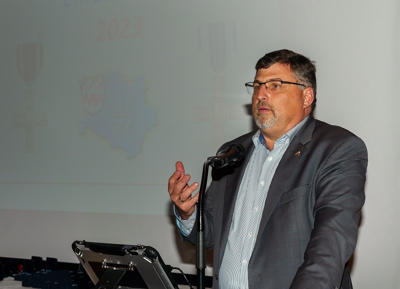 Die Präsentation des diesjährigen Ehrenabends, aber auch in den Jahren davor, wurden von ihm genauso erstellt, wie die Präsentationen zu den Verbandsversammlungen und Kommandanten-Dienstversammlungen.