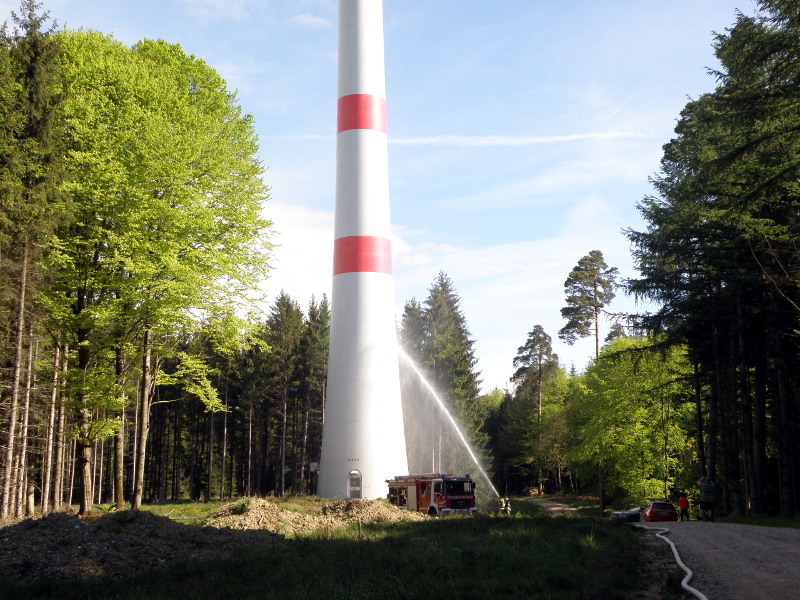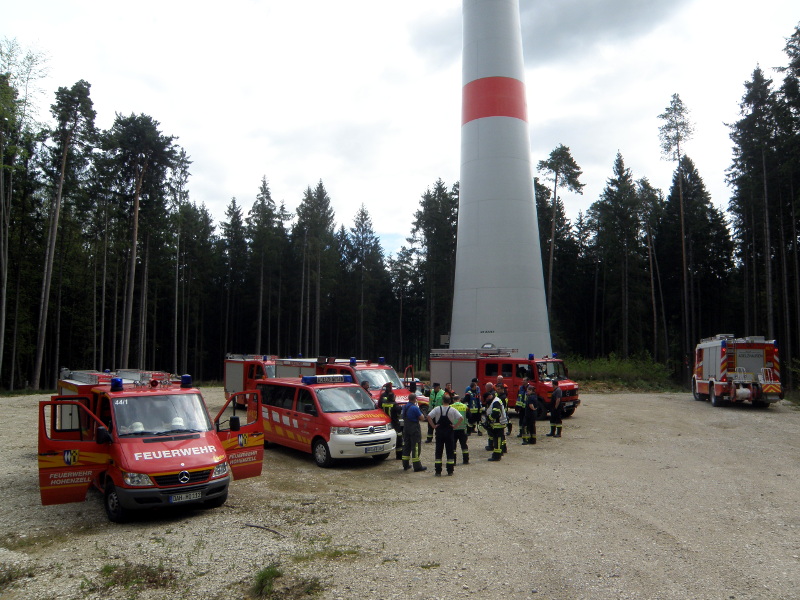 Am Samstag (13.05.17) fand bei den Windkraftanlagen im Gemeindebereich Odelzhausen eine Einsatzübung statt. Angenommen wurde hierbei eine Rauchentwicklung an einem der im dortigen Wald errichteten Windräder.Die Aufgaben der Feuerwehren bestanden darin, die vor Ort vorhandenen Löschwasserbehälter, die sich in jeweiliger Nähe der Windkraftanlagen errichtet wurden, herzurichten sowie zu testen.