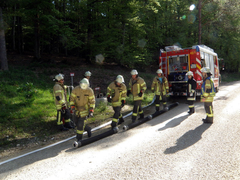 Des Weiteren wurde die Zusammenarbeit der Kräfte im Falle eines erforderlichen Löschwasser-Pendelverkehrs geübt. Zum Abschluss der Übung konnten alle Beteiligten das Innere einer der Anlagen ausgiebig erkundet.