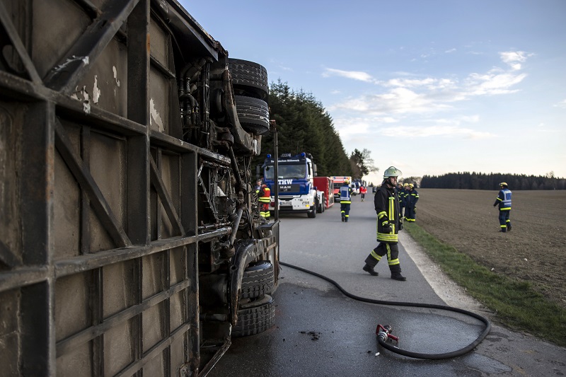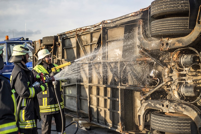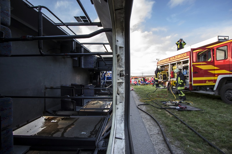 Durch auslaufende Betriebsstoffe ist es kurzzeitig auch zu einer Rauchentwicklung am Bus gekommen, die durch den bereitgestellten Brandschutz jedoch schnell unter Kontrolle gebracht werden konnte.
