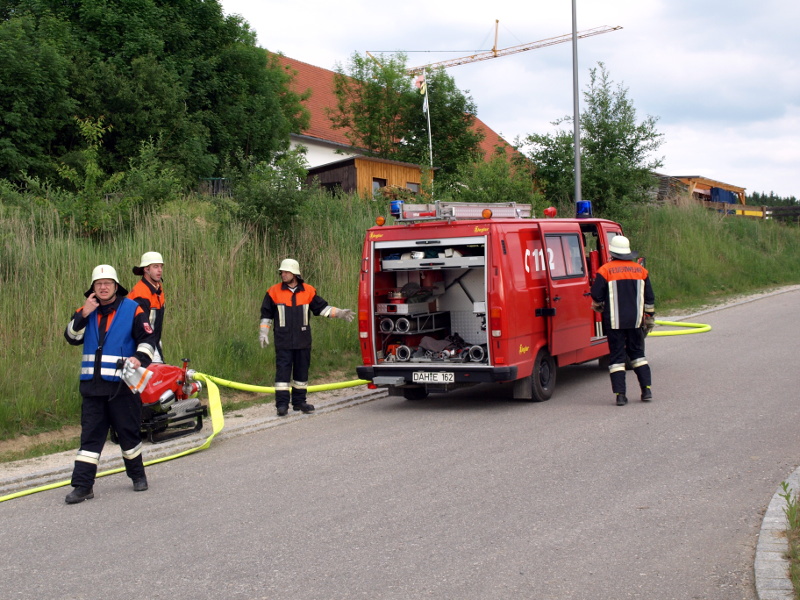 Nach einer kurzen Manöverkritik von Kreisbrandinspektor Paul Steier und Kreisbrandmeister Hubert Burgstaller mit konstruktiven Anmerkungen für den Ernstfall schloss die Übung mit einer Brotzeit, die von der Firma Lignox spendiert wurde.