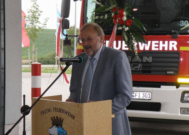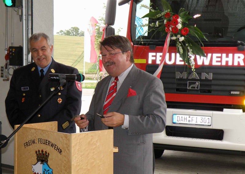Landrat Christmann betonte in seiner Rede, nur durch die Solidarität zwischen dem Landkreis und den beteiligten Gemeinden war es möglich, die Beschaffung durchzuführen; auch er wünschte den Kameraden der FF Indersdorf für die Zukunft alles erdenklich Gute und übergab die Fahrzeugschlüssel an den Bürgermeister und den Kommandanten der Feuerwehr Indersdorf und an den Kreisbrandrat.