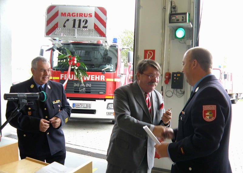 - die ehemaligen Angehörigen der Kreisbrandinspektion KBI a.D. Karl Brandmair, EKBI Heinz Schmirler und KBM a.D. Leonhard Märkl
