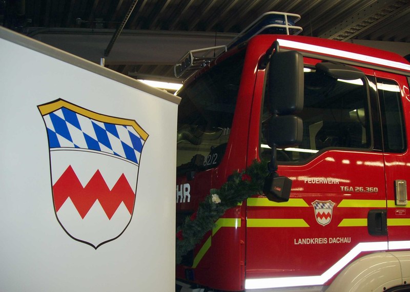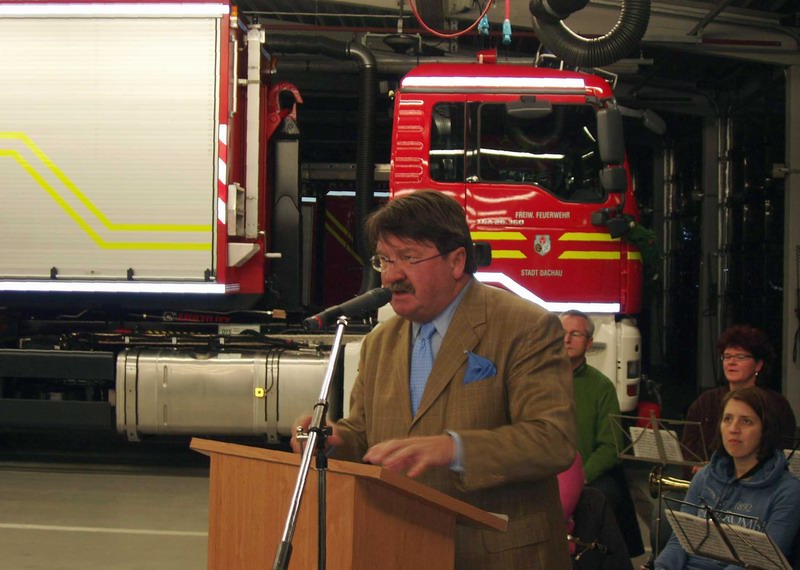 Am Freitag (30.11.07) fand im Feuerwehrhaus Dachau die offizielle Übergabe der beiden Wechselladerfahrzeuge samt Aufbauten statt. Kreisbrandrat Rudi Reimoser konnte dazu neben Landrat Hansjörg Christmann, Oberbürgermeister Peter Bürgel, MdL Blasius Thätter und Bürgermeister der Landkreisgemeinden auch Kreis- und Stadträte, sowie Vertreter des Landratsamtes Dachau, der Polizei, der Bereitschaftspolizei, der Berufsfeuerwehr München, des BRK und THW`s, den Kreisbrandrat des Landkreises Starnberg, die Angehörigen der Kreisbrandinspektion und der Dachauer Feuerwehr, aber auch Vertreter der beteiligten Firmen begrüßen.Kreisbrandrat Reimoser wies in seiner Ansprache u.a. darauf hin, dass dieser Tag in die Geschichte der Feuerwehren des Landkreises, besonders aber bei der Dachauer Feuerwehr eingehen wird, nachdem es sich hier um eine Fahrzeuggeneration handelt, die für die Zukunft richtungsweisend wird. Sein Dank galt vor allem dem Landkreis und der Stadt Dachau, sowie der Regierung von Oberbayern, die zur Verwirklichung der Projekte beigetragen haben und die Finanzierung ermöglichten.