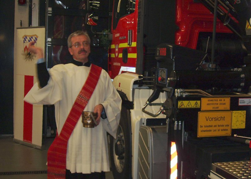 Feuerwehrseelsorger, Diakon Albert Wenning, nahm im Anschluss die Segnung der beiden Fahrzeuge vor – nach der Schlüsselübergabe konnten die Gäste Fahrzeuge und Gerätschaften ausführlich in Augenschein nehmen.