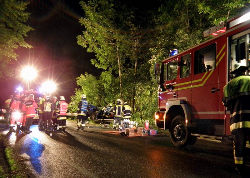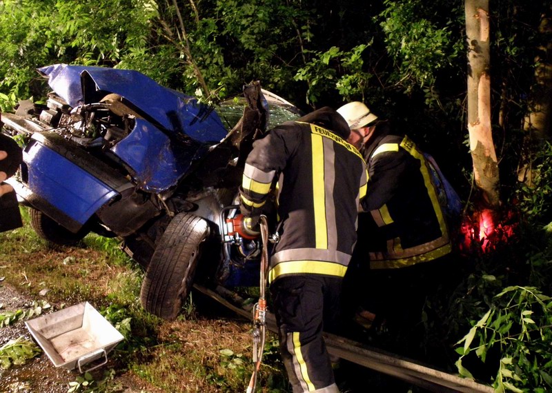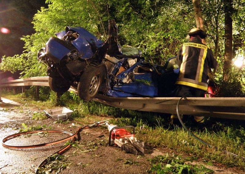 Einsatzkräften der Dachauer Feuerwehr verblieb die traurige Pflicht, die Leiche des Fahrers mittels schwerem technischen Gerät aus dem Fahrzeugwrack zu befreien.