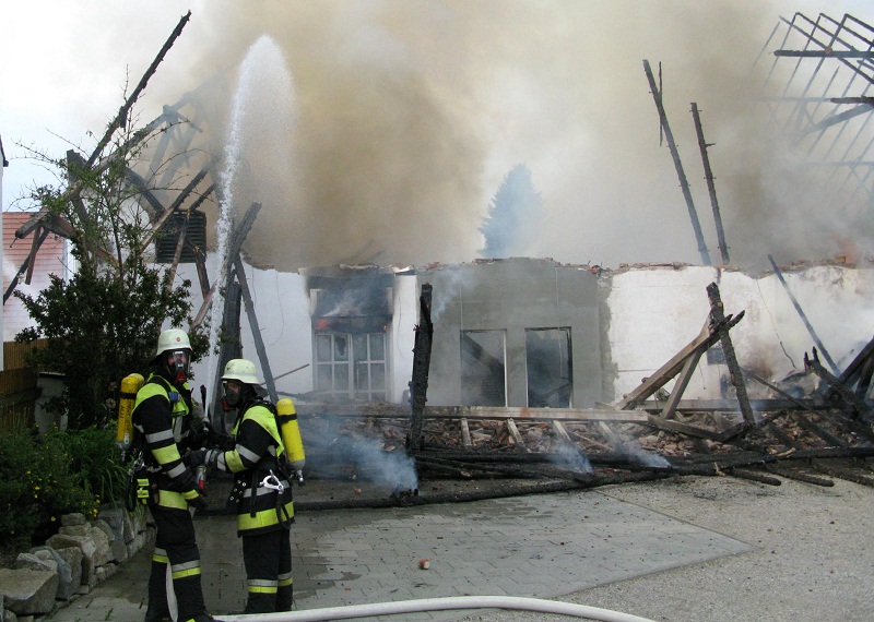 Die Löscharbeiten zogen sich mehrere Stunden hin. Bis Mittag wurden die Kräfte der umliegenden Gemeinden und der Stadt Dachau aus dem Einsatz herausgelöst und die vier Gemeindefeuerwehren blieben für die Nachlöscharbeiten, die sich über den ganzen Nachmittag erstrecken, vor Ort. Die Einsatzleitung hat zur Unterstützung den Raupenbagger einer Privatfirma angefordert; damit soll der Brandschutt besser verteilt werden um ihn abzulöschen.