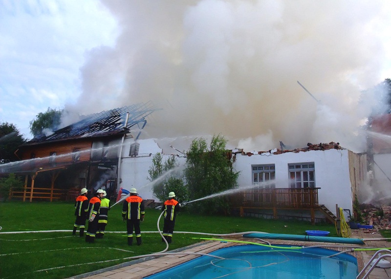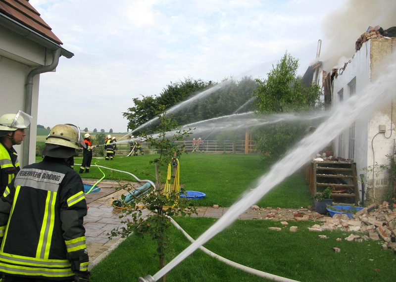 Das Hauptaugenmerk der Feuerwehren bestand darin, die benachbarten Gebäude (u.a. die Kirche) zu schützen. Der Brand wurde mit mehreren Strahlrohren sowie dem Wenderohr der Drehleiter aus Dachau bekämpft. Das Löschwasser wurde aus den Hydranten und einem Bach entnommen.