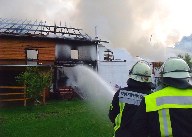 Beim Eintreffen der ersten Kräfte war eine massive Rauchentwicklung und Flammen aus der etwa 20 x 40 Meter große Halle erkennbar, woraufhin umgehend weitere Einsatzkräfte aus Ampermoching, Günding, Karlsfeld, Röhrmoos, Unterweilbach und Dachau dazu alarmiert wurden. In dem Gebäude befanden sich ein gewerblicher Betrieb, ein Heulager sowie eine Hackschnitzelheizung, welche allerdings noch nicht in Betrieb genommen war.