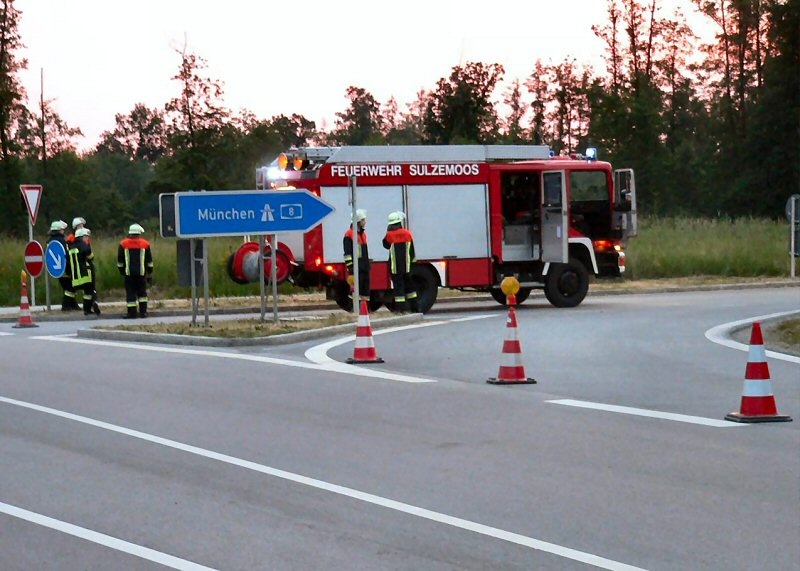 Erneuter Einsatz für die Feuerwehren nach einem Unfall auf der A 8; in den frühen Morgenstunden des Sonntags (25.06.06) ereignete sich ein weiterer Verkehrsunfall auf der A 8 zwischen den Anschlussstellen Sulzemoos und Dachau. Gegen 05.40 Uhr kam aus noch ungeklärten Gründen ein Pkw von der Fahrbahn ab und kam in einem angrenzenden Feld zum Stehen – dabei erlitten die vier Insassen des Wagens Verletzungen und wurden von Notarzt und Rettungsdienst medizinisch versorgt. Da ein Rettungshubschrauber an der Unfallstelle benötigt wurde, wurden die Feuerwehren Odelzhausen und Sulzemoos zur Sperrung der Fahrbahn in Richtung München, sowie zur Fahrzeugbergung und Reinigung der Fahrbahn eingesetzt – nach knapp einer Stunde konnte die Sperrung wieder aufgehoben werden.