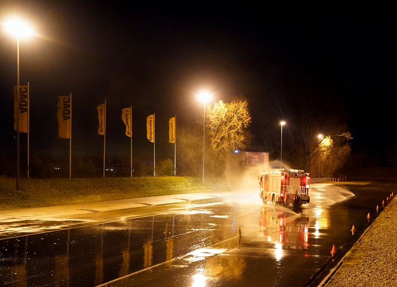 Die Maschinisten von Feuerwehrfahrzeugen werden bei Einsatzfahrten vor besondere Herausforderungen gestellt, müssen Sie die oft schweren Löschfahrzeuge bei jeder Witterung und unter Stress unfallfrei zum Einsatzort lenken. Aus diesem Grund werden mit Unterstützung der KUVB und des LFV Bayern regelmäßig Fahrsicherheitstrainings veranstaltet, bei denen schwierige Fahrmanöver geübt und die Grenzen der Fahrzeuge ausgelotet werden können.