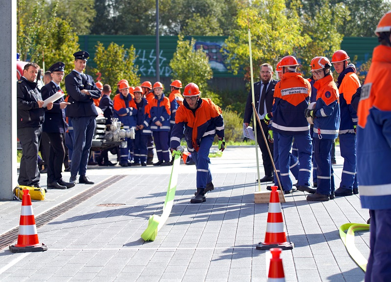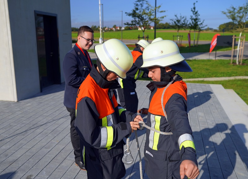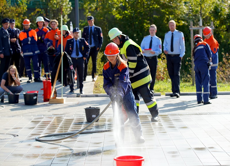 Bereits am Vormittag legten 98 Jugendliche aus 17 Landkreiswehren die Jugendleistungsprüfung ab. Vor den Augen der Schiedsrichter sowie zahlreicher Besucher stellte der Feuerwehrnachwuchs sein Können in 10 praktischen Disziplinen sowie einer theoretischen Prüfung unter Beweis.