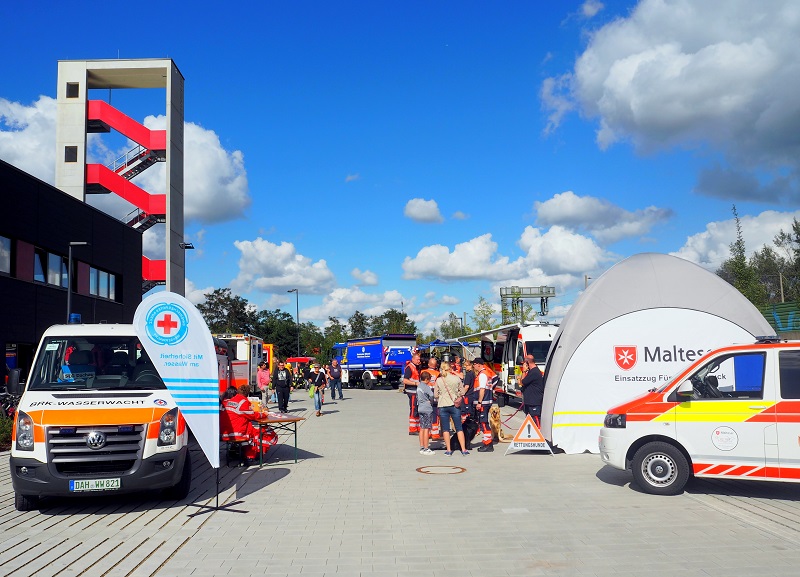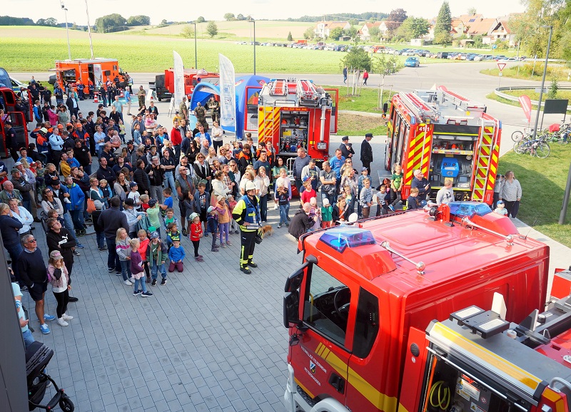 Das Gelände des neuen Feuerwehrhauses in Petershausen bot den Besuchern die Gelegenheit, nicht nur die örtlichen Feuerwehren mit ihren Fahrzeugen kennenzulernen, sondern auch andere Organisationen wie das Bayerische Rote Kreuz, die Malteser, die Polizei, das Technische Hilfswerk (THW), die Unterstützungsgruppe Örtliche Einsatzleitung (UG-ÖEL) sowie die Bundeswehr. Hier konnten die Gäste hautnah die verschiedenen Fahrzeuge und Gerätschaften erkunden.