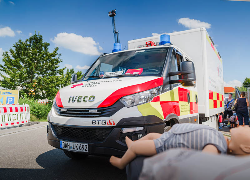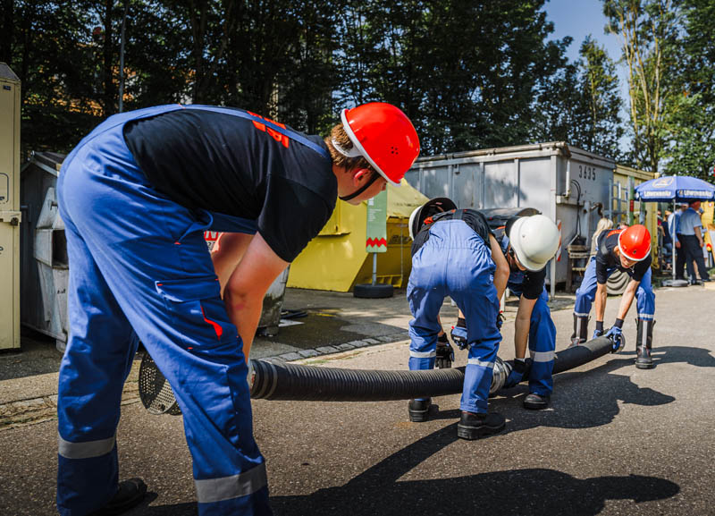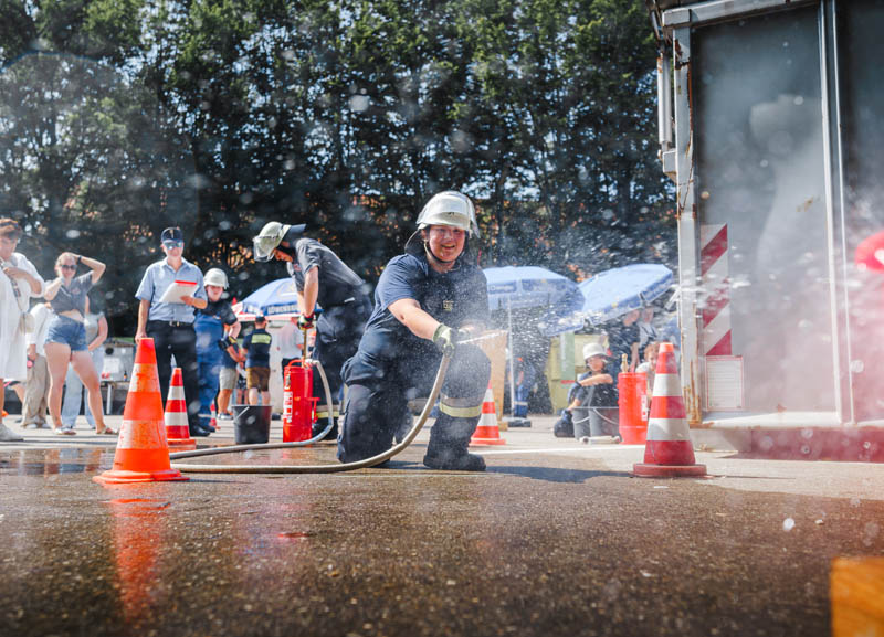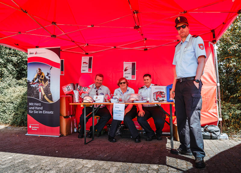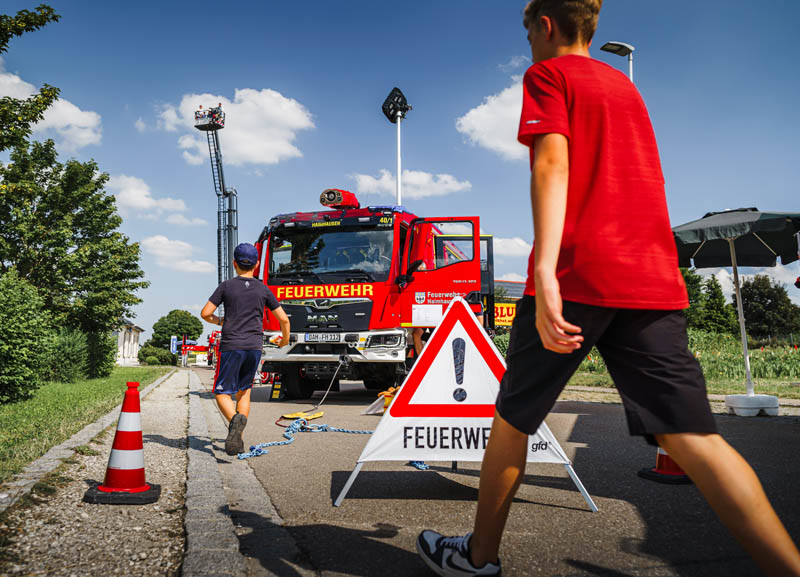 Ein Highlight für die Besucher waren die Einsatzvorführungen der örtlichen Feuerwehr. Diese präsentierte den interessierten Besuchern nicht nur die Einsatzmöglichkeiten ihrer Drohne, sondern auch die Personenrettung bei einem Verkehrsunfall. Daneben konnten sich die Besucher auch selbst am Feuerlöschtrainer sowie an Schere und Spreizer betätigen, um die Arbeit der Feuerwehr hautnah zu erleben. Bei Drehleiterfahrten konnte man zudem einen Ausblick von oben genießen.