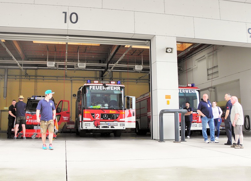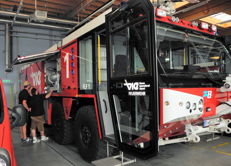 Natürlich dürfen bei den Ausflügen nach Österreich auch feuerwehrspezifische Themen nicht zu kurz kommen, in diesem Jahr stand deshalb die Besichtigung der Betriebsfeuerwehr des Flughafens Wien-Schwechat auf dem Programm. Nach den üblichen Sicherheitskontrollen am Airport wurden die Dachauer herzlich von den Kameraden der Flughafenfeuerwehr empfangen und mit einem Vortrag über deren Arbeit informiert.