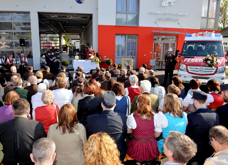 Höhepunkt des Ausflugs war am Samstag die Segnung des neuen Hilfeleistungslöschfahrzeuges vom Typ HLFA1-W. Im Rahmen der Florianifeier des Unterabschnitts 1 Pottenstein, zu dem auch die Feuerwehren aus Enzesfeld und Hirtenberg gehören, segnete Pfarrer Krzysztof Szczesny das neue Fahrzeug. Für die FF Dachau überbrachte Maximilian Reimoser die besten Glückwünsche und Grüße.