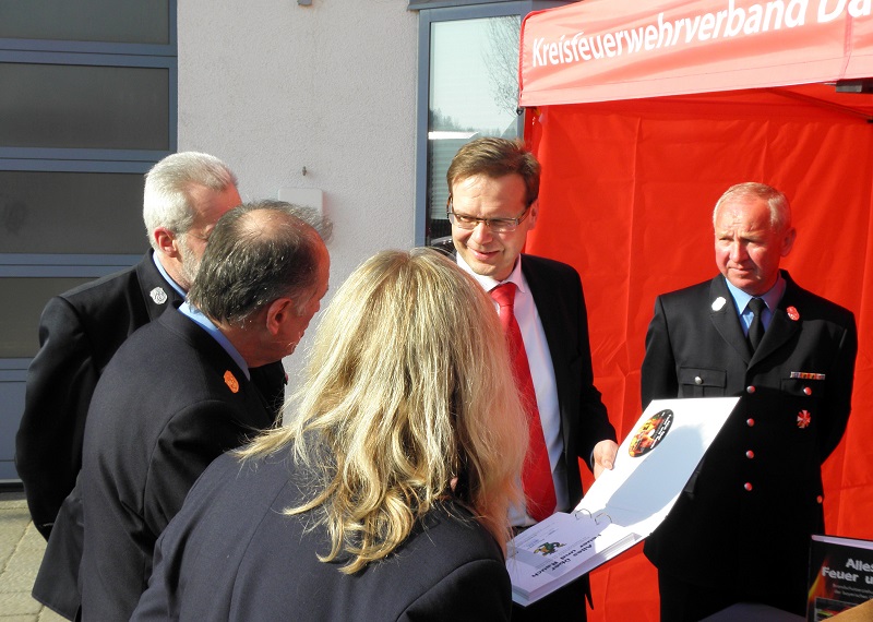 Am vergangenen Freitag (14.03.2014) wurden die Anschaffungen durch Sparkassenvorstand Thomas Schmid offiziell an Kreisbrandrat Heinrich Schmalenberg, Brandschutzerziehungsbeauftragte Monika Schneider sowie Klaus Zacherl als stellvertretenden Vorsitzenden des Kreisfeuerwehrverbandes übergeben.