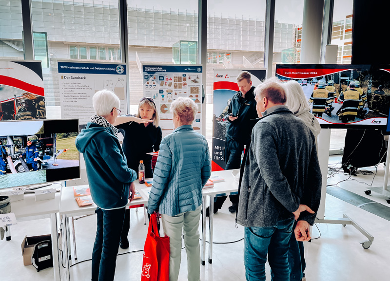 Die Veranstaltung bot zudem eine Plattform für regionale Betriebe und Organisationen, ihre Produkte und Dienstleistungen rund um den Hochwasserschutz zu präsentieren. Besucher konnten sich über wasserdichte Fenster, mobile Schutzsysteme, Bauwerksabdichtungen und die Sicherung von Heizöltanks informieren. Experten standen bereit, um Fragen zu finanziellen Absicherungen und Versicherungen zu beantworten.