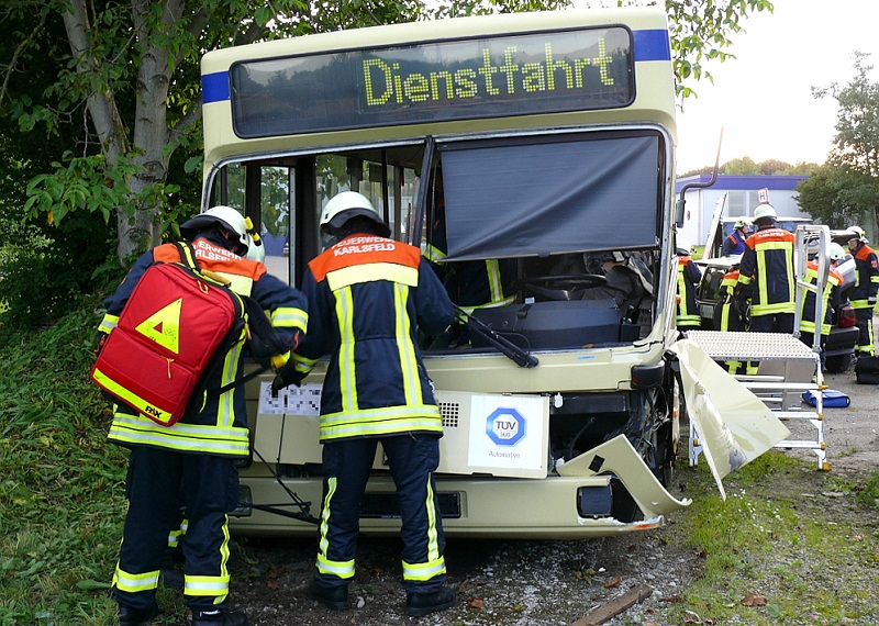 Fit für den Ernstfall machte sich die Mannschaft der Feuerwehr Karlsfeld am Donnerstag, den 19. August 2010 auf einem speziellem Trainingsgelände. Übungsthema in diesem Monat: Technische Hilfeleistung.Grundlage für diese Übung war ein von den Ausbildern nachgestelltes Einsatzszenario - es wurde ein Verkehrsunfall zwischen einem Linienbus und einem PKW mit mehreren „verletzten Personen“ simuliert.