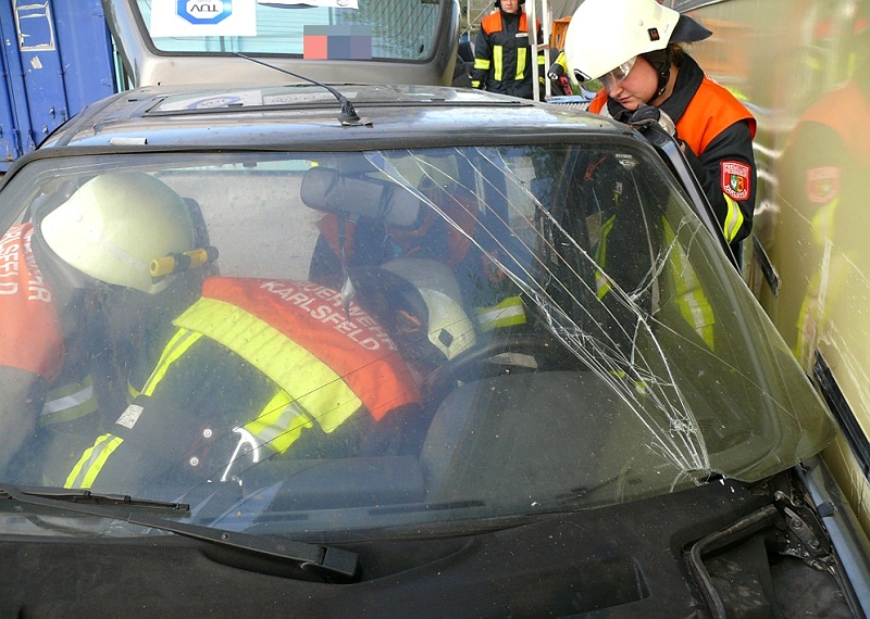 Nach der Lageerkundung durch den Gruppenführer wurden binnen kürzester Zeit Sachverhalt und Aufgabe an die Mannschaft geschildert, welche sich umgehend truppweise an die Arbeit machte. Als gute Zugangsmöglichkeit bot sich den Rettern die zertrümmerte Frontscheibe des Busses. Der verletzte Busfahrer sowie der Fahrgast wurden mit einer Schaufeltrage möglichst zügig aus dem Bus gerettet, der eingeklemmte Fahrer des PKW mit Hilfe von Spreizer und Rettungsschere möglichst schonend aus dem Fahrzeug befreit.