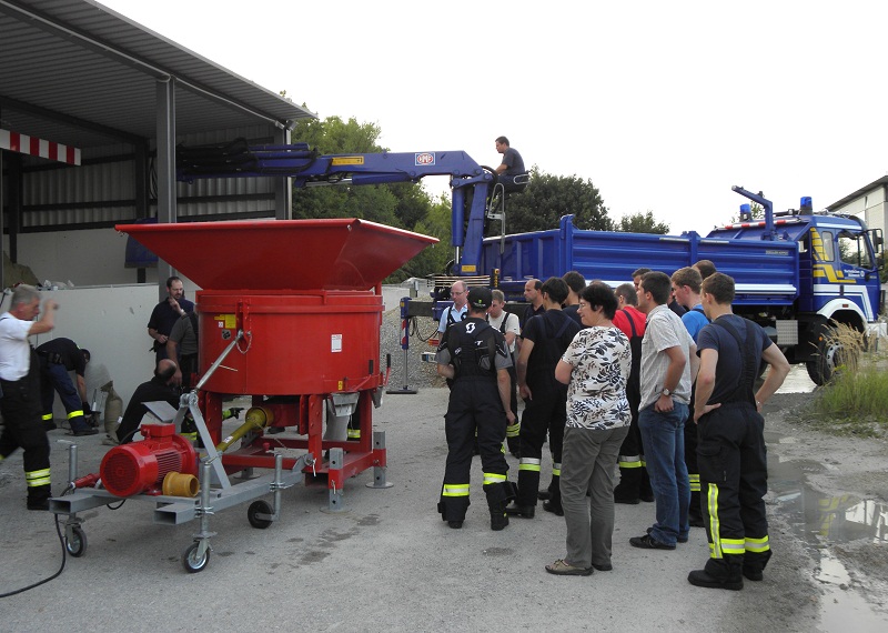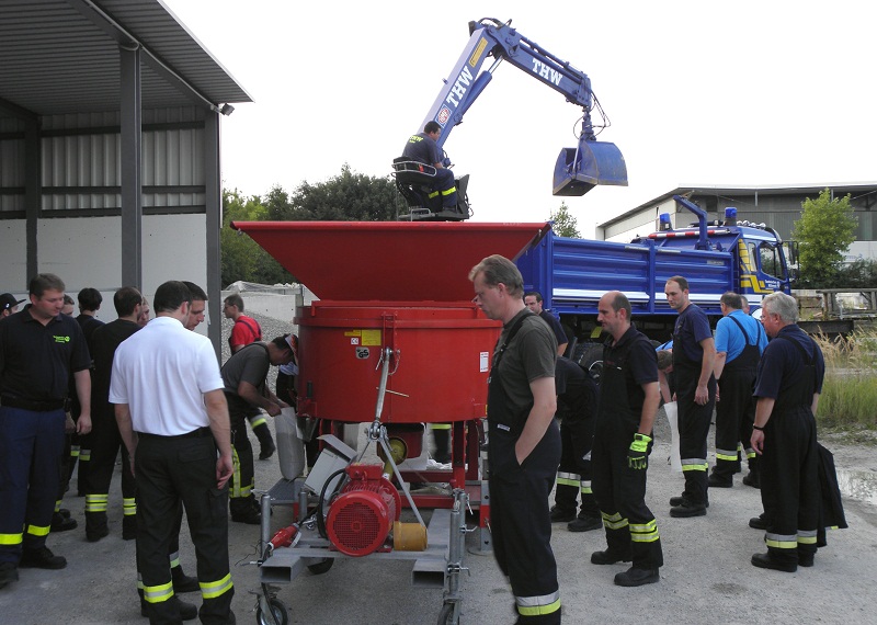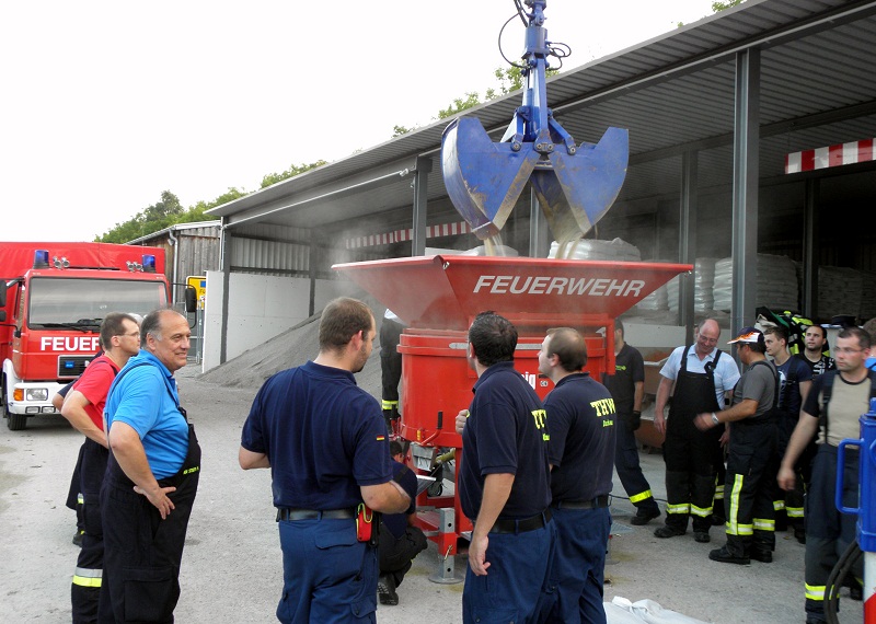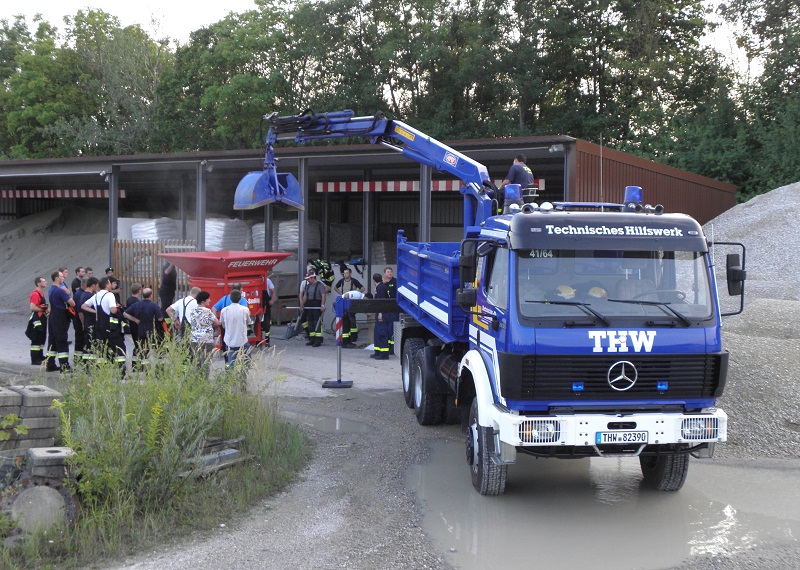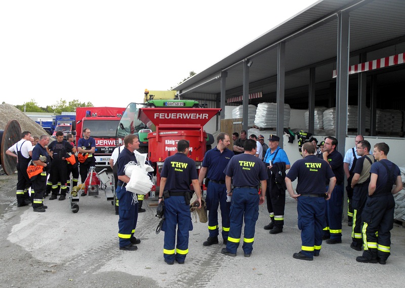 Den genauen Ablauf haben Kräfte von THW und den Feuerwehren Dachau, Eisolzried, Günding Hohenzell und Pellheim am vergangenen Dienstag (21.08.2012) am Bauhof Dachau geprobt. Durch die freundliche Unterstützung der Stadt Dachau würde hier auch im Einsatzfall die Abfüllung durchgeführt werden, da sich die Örtlichkeit bereits bei größeren Schadenslagen in der Vergangenheit bestens bewährt hat.
