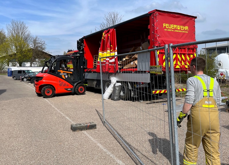Feuerwehr und THW richten Flüchtlingsunterkunft in Hebertshausen ein