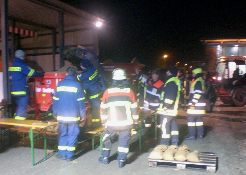 Feuerwehr und THW testen neue Möglichkeiten beim Sandsackfüllen