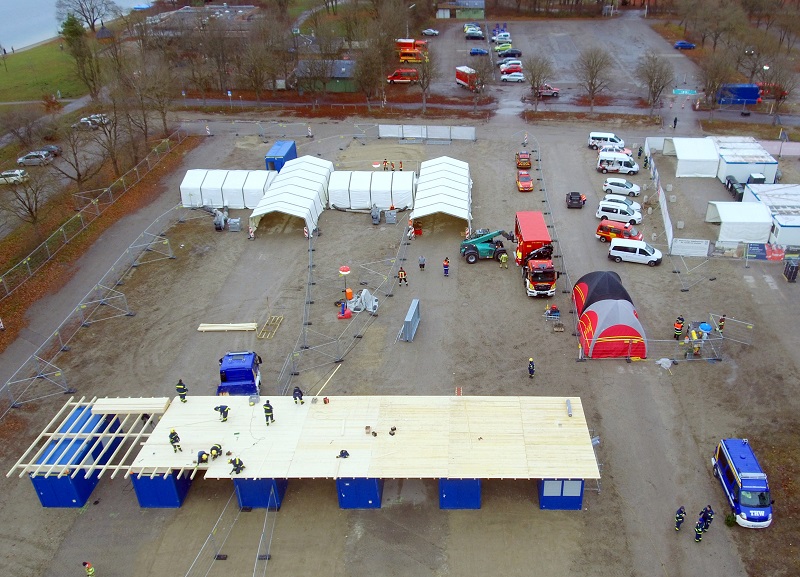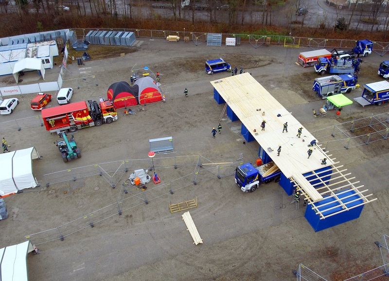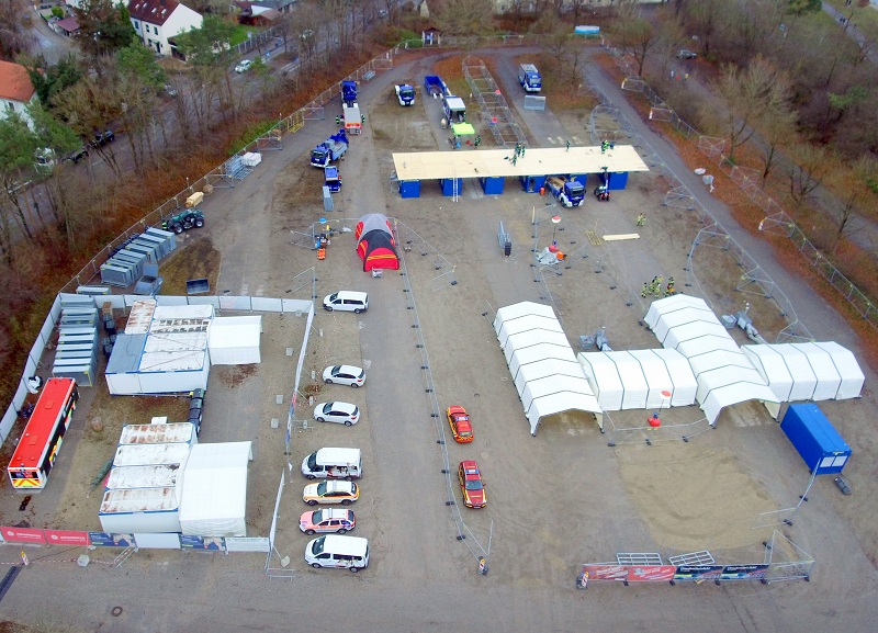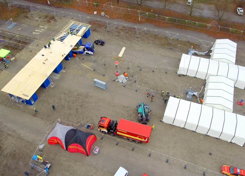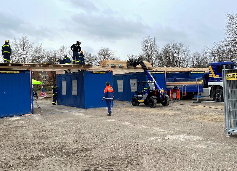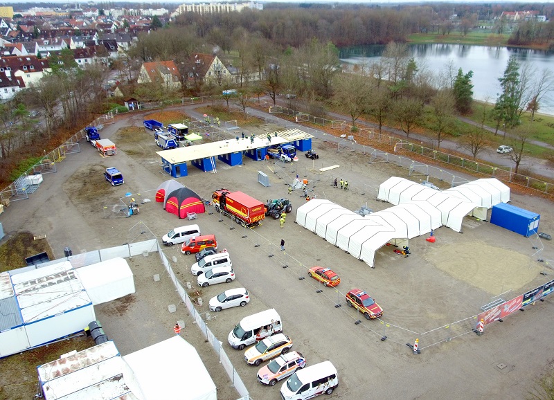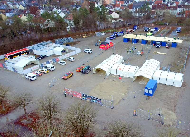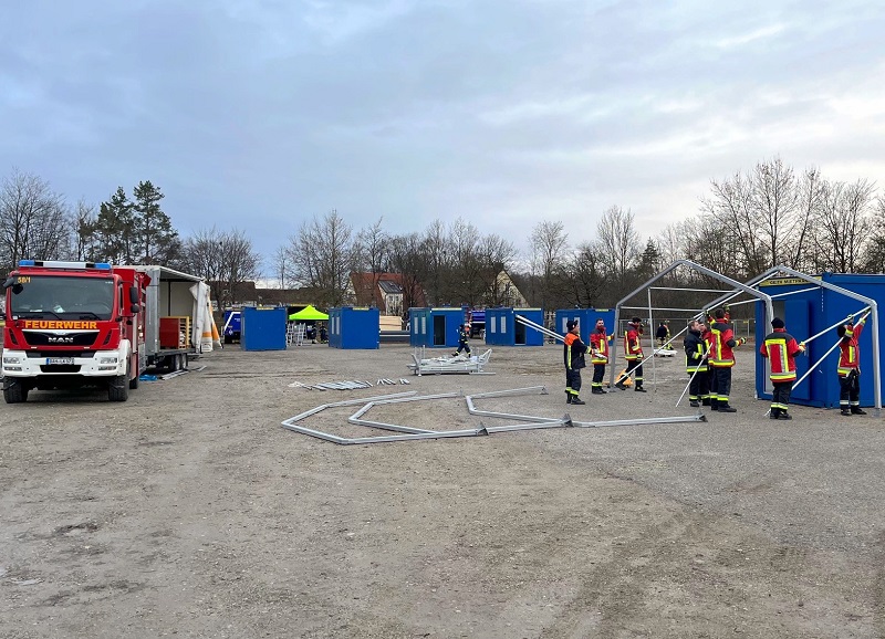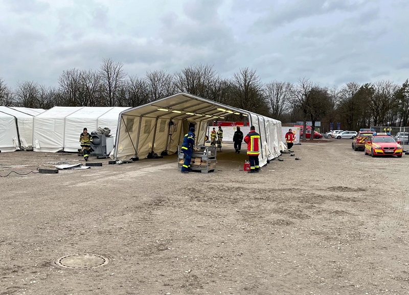 Feuerwehr und THW unterstützen beim Aufbau der „Drive-Through-Impfstation“ in Karlsfeld
