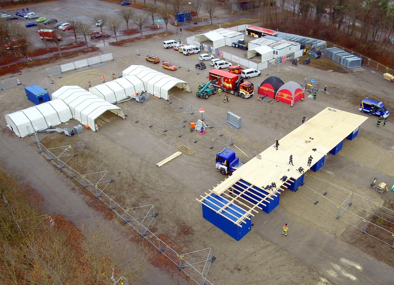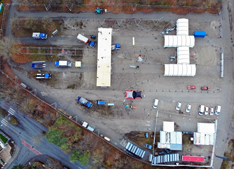 - Aufstellen und Unterbauen von 10 Büro- und Aufenthaltscontainern für das Impfpersonal, die Impfstoffvorbereitung und den Sicherheitsdienst