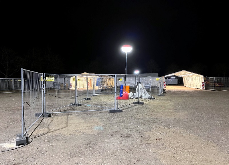 - Beleuchtung des Geländes, der Zelte und des Registrierungsbereichs mit mehr als 70 Leuchten