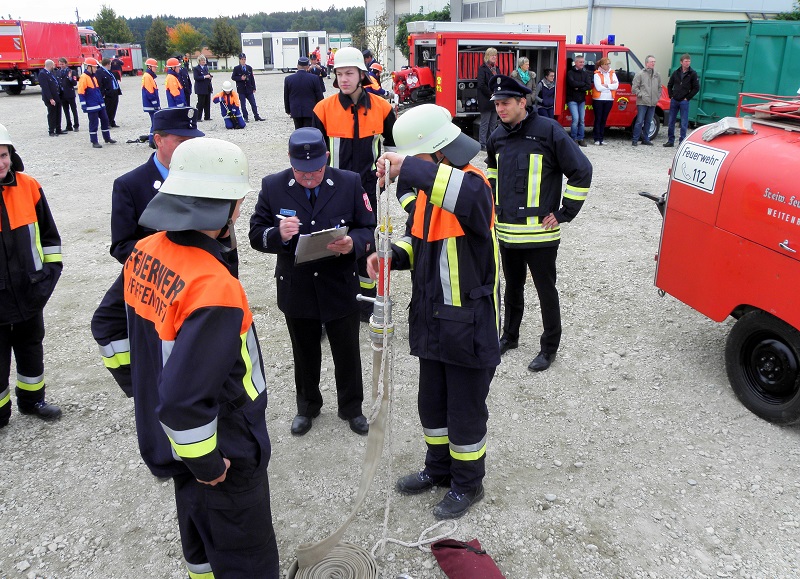 Am Vormittag stellten die Jugendlichen aus den Landkreiswehren ihr Können unter Beweis. 69 Teilnehmer unterzogen sich vor den Augen der Schiedsrichter 10 praktischen Grundübungen sowie einer theoretischen Prüfung und legten damit die Jugendleistungsprüfung ab. Passend zum diesjährigen Motto „Frauen zur Feuerwehr“ waren unter den Prüflingen auch 25 Mädchen. Dies beweist deutlich, dass Frauen in den Feuerwehren herzlich willkommen sind und sich beim Dienst am Nächsten engagieren wollen.