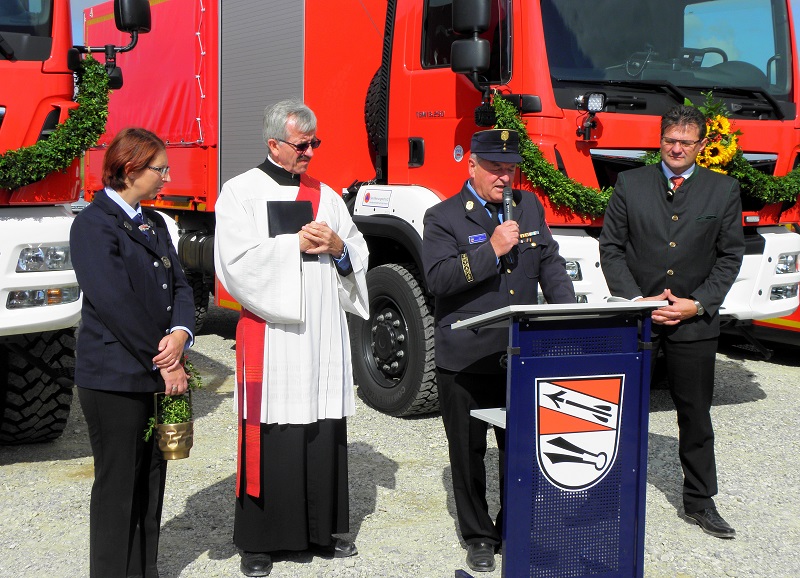 Kreisbrandrat Heinrich Schmalenberg lies in seiner Ansprache die „unendliche“ Geschichte bis zur Auslieferung der Fahrzeuge Revue passieren, wurden diese doch bereits von seinem Vorgänger im Amt beantragt.