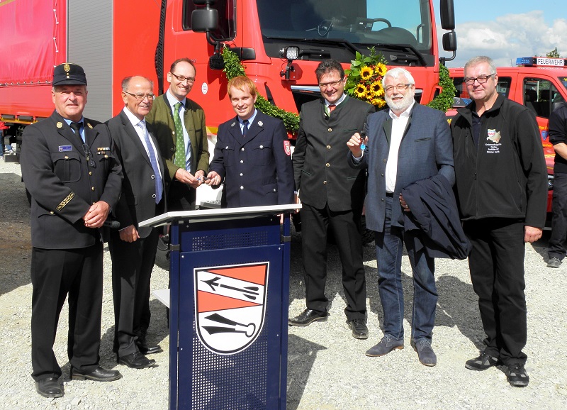 Im Anschluss an die Segnung übergaben die Landtagsabgeordneten Bernhard Seidenath und Martin Güll die Fahrzeugschlüssel symbolisch an die Vertreter der Feuerwehren Altomünster und Eisenhofen.