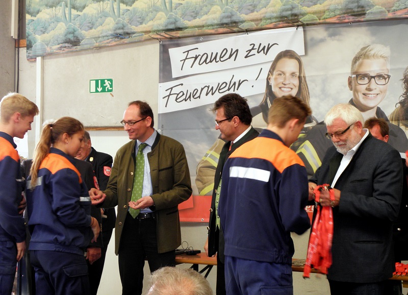 Als Belohnung erhielten alle Teilnehmer die begehrte Jugendleistungsspange aus den Händen von stellvertretendem Landrat und Bürgermeister Helmut Zech, Kreisbrandrat Heinrich Schmalenberg sowie den Landtagsabgeordneten Bernhard Seidenath und Martin Güll überreicht.