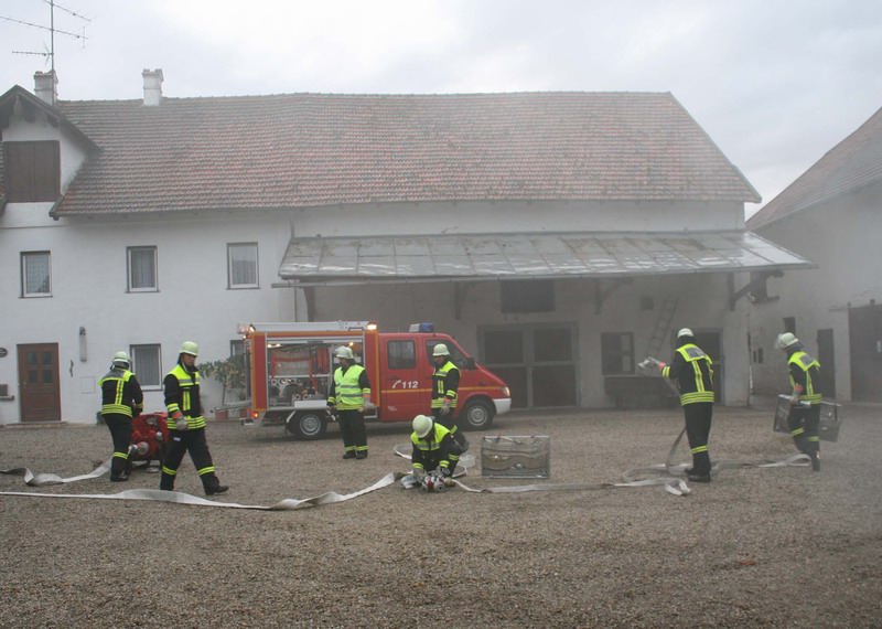 Ebenfalls in einem landwirtschaftlichen Anwesen in Buxberg diente als Übungsobjekt; hier kamen neben den örtlich zuständigen Feuerwehren auch Wehren landkreisübergreifend, aus dem Raum Aichach zum Einsatz.