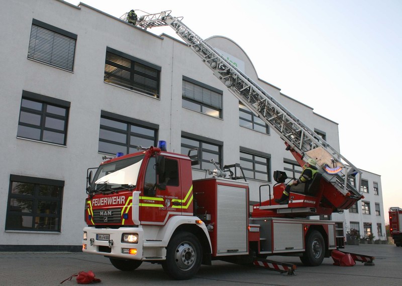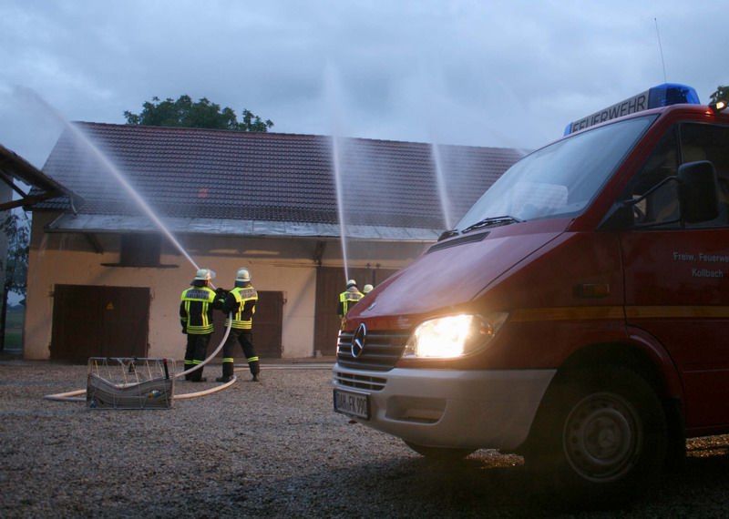 In Ampermoching war eine Halle das Ziel einer größeren Übung, an der ebenfalls mehrere Feuerwehren zum Einsatz kamen; hier wurde neben der Personenrettung auch die Zufahrt und die Anleitermöglichkeit der Drehleiter geprobt.