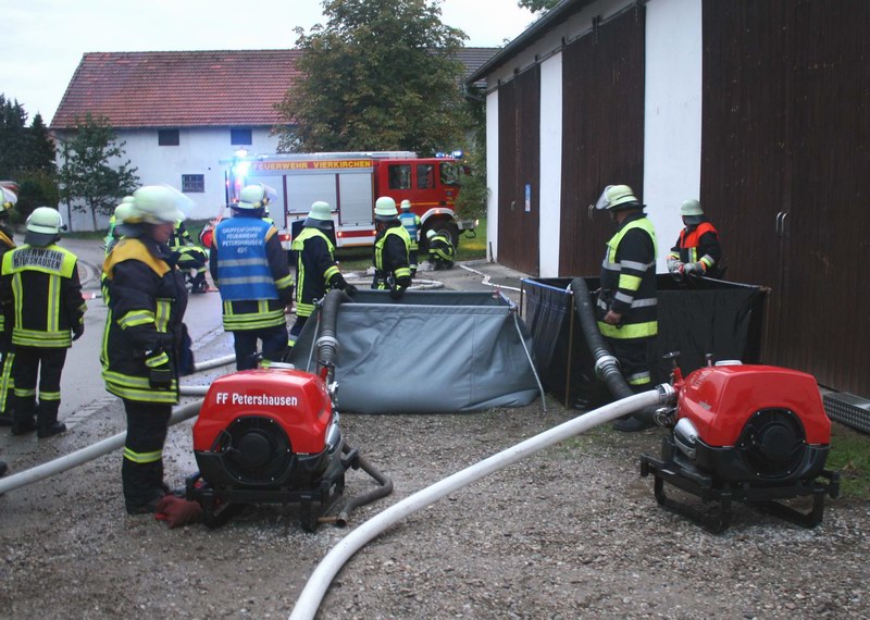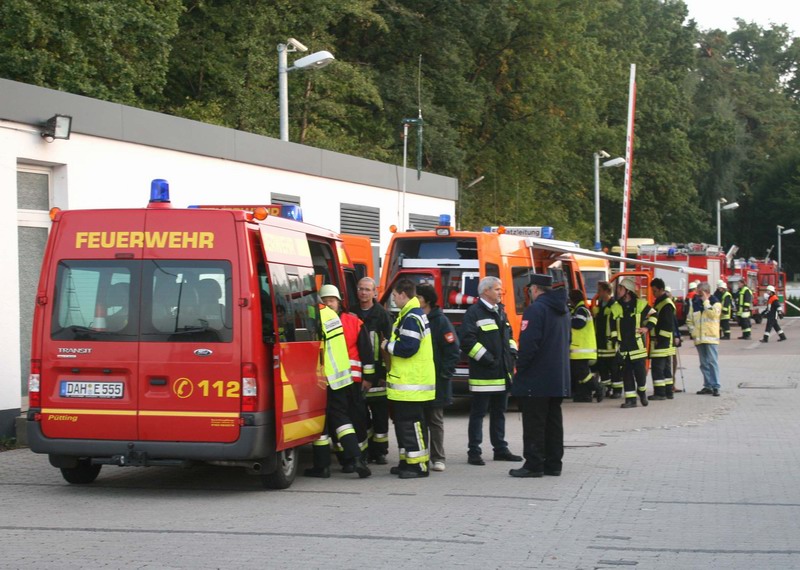 Den Aufbau einer mehreren hundert Meter langen Förderleitung und der Einsatz von Chemikalienschutzanzügen forderte eine Übung in einem Produktionsbetrieb in Eisenhofen; auch hier wurde das Einsatzziel voll erreicht.
