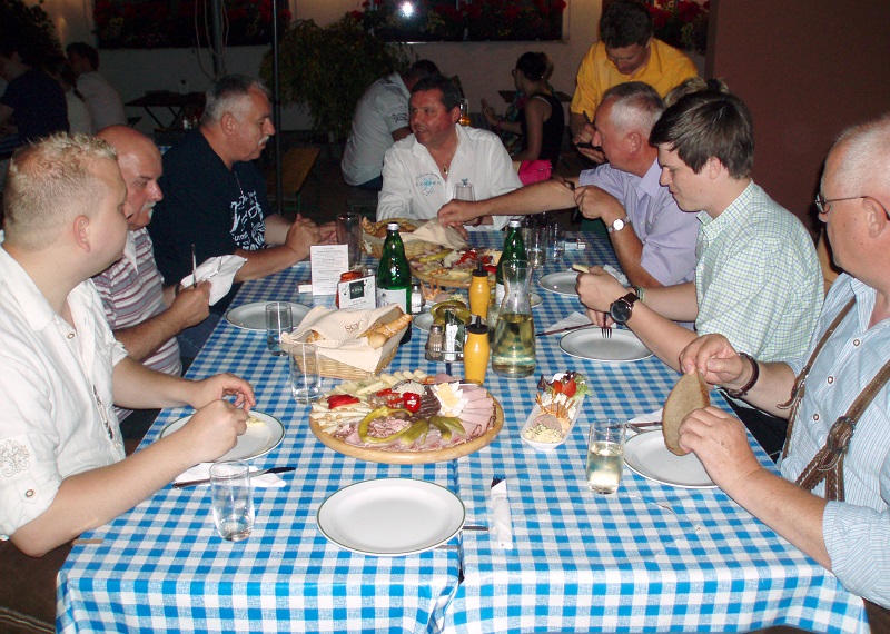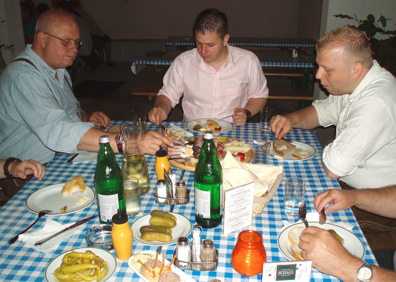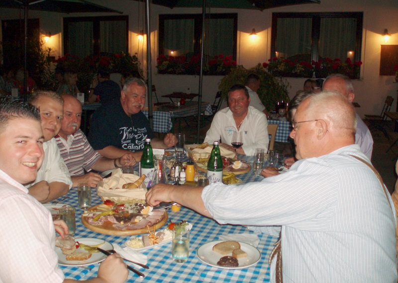 Da die örtlichen Lokale wegen des Festes geschlossen waren, lud uns Bürgermeister Franz Schneider zum Abendessen in ein Heurigenlokal im Nachbarort Hölles ein. An dieser Stelle ein „Vergelt´s Gott“ an Bürgermeister Schneider, der sämtliche Kosten an diesem Abend übernahm.
